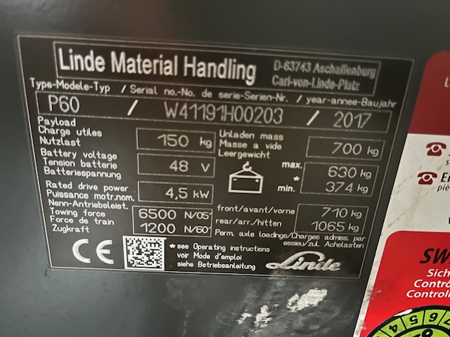 Linde P60 1020 heures extraction latérale
