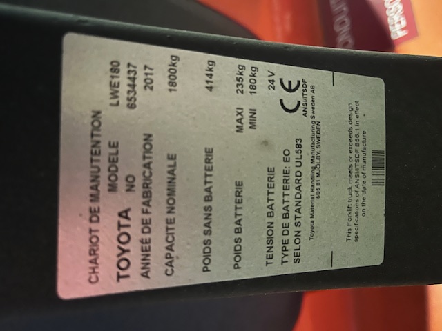 Toyota LWE180 démo 8 heures fourches 2000mm